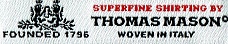 トーマスメイソンは産業革命の真っ只中である1796年に英国ランカシャーにおいて設立された最古級の歴史を持つシャツ地メーカーです。現在においてはアルビニグループの一員ですが、英国流スタイルの原点から外れないこと、最上級のシャツ地を作るという原点は受け継がれています。エジプト綿の最高級原料としてGIZA 45とGIZA 87にこだわったその優雅な品質は世界から認められた高級シャツ生地の「基準」であり続けています。